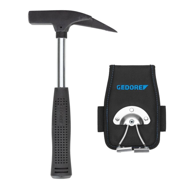 Ideal for the building trade, especially for shuttering work Safe, handy and efficient transport of the roofing hammer - always at hand Holds any claw hammer at a comfortable angle Enables boundless freedom of movement Polyester bag Hooks stainless steel and swivel