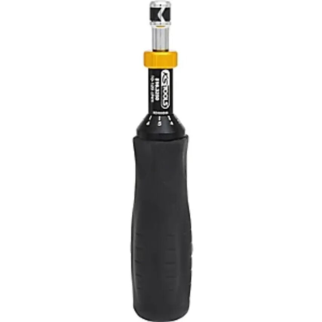 1/4'' torque screwdriver, graduation (mechanical) , 10 - 120 cNm. Supplied = assembled. Weight = 0.23 kg. Display type = graduation (mechanical) Actuation accuracy = 5 %. Diameter D1 = 30 mm. Diameter D2 = 11 mm. Handle = rubber handles. Length = 180 mm. Measuring range cNm = 10 - 120 cNm. Measuring range Nm = 0, 1 - 1, 2 Nm. Partial length L2 = 28 mm. Tool holder = bit. Product type = pre-set torque screwdrivers. Triggering accuracy: 6% tolerance from the set scale value and better. Repeat accuracy and precision for at least 5000 load changes. For controlled clockwise and anti-clockwise tightening. With precision helical compression spring. Palpable torque release signal by ratchet. Exceeding the set value is impossible. Automatic return to the starting position. Includes an Nm micrometre scale with divisions for fine and precise adjustment. Ergonomic shape of the rubber handle for reliable torque transmission. Hexagon socket holder in accordance with DIN 3126 - E 6.3. Individual serial number for clear product identification. Including calibration declaration of conformity in accordance with EN ISO 6789:2017 (E) - traceable to national standards.