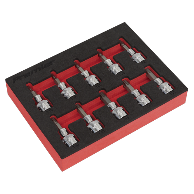 Forged Chrome Vanadium steel sockets with S2 steel hex bits. Sockets are heat treated and chrome plated with a fully polished mirror finish. Knurled rings assist the gripping of the sockets with oily fingers. Supplied in EVA tray.