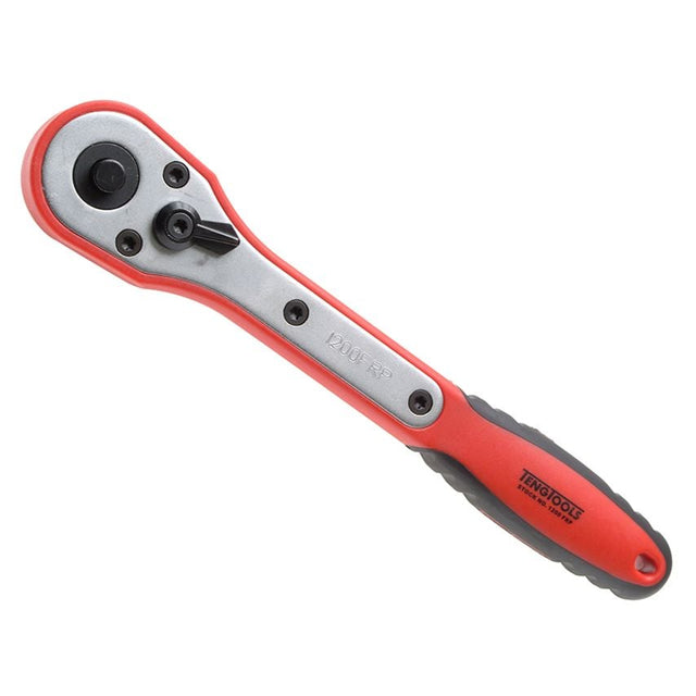This Teng & frac14 inch FRP Quick-Release Ratchet has a steel reinforced fibre handle. It has 45 teeth (8-degree increment), quick release and flip reverse functions. The ratchet meets or exceeds all internationally recognised quality and torque specifications. The lightweight design is not only lighter and just as strong, but it is more comfortable to use than regular ratchets. The Handle is bi-metal and has a comfort grip and meets Din 3122D standard. Specifications Drive & frac14 in. Maximum recommended torque 62Nm. No of teeth 45. Length 150mm (6in). Weight 96g.