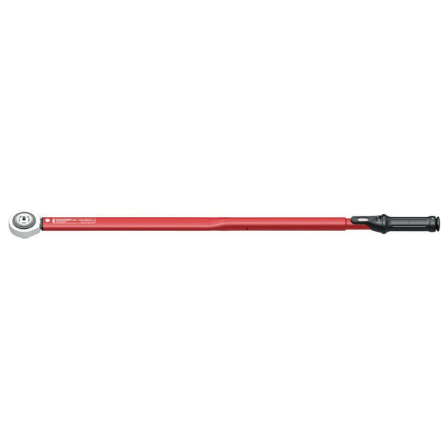 For controlled bi-directional tightening . Repetition-accurate and precision-like. Torque triggering clearly to be heard and felt Features:. Adjustable torque wrench with square drive and integrated ratchet-head function. Square drive with ratchet mechanism. Torque is set by turning the handle. The set value is fixed through the lock at the end of the handle. Easy-to-read scale with magnifying glass for Nm, plus 1/10 scale for precision setting. Actuation accuracy: +/- 3 % tolerance of the scale set torque Scope of delivery:. Torque wrench with test certificate acc. to DIN EN ISO 6789 .