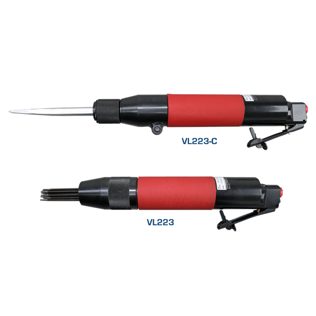 VL223 NEEDLE SCALERLOW VIBRATION PNEUMATIC SCALERThe Trelawny VL223 Medium duty low vibration needle/chisel scaler is an in-line tool offering the ideal balance of weight and performance for many scaling applications. Featuring Trelawnys unique Vibro Lo vibration reduction system the VL range offers unrivalled performance, reliability and reduction in levels of harmful vibration. Offered as both needle and chisel models or as a kit with both attachments for multiple applications.