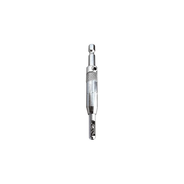 Self-centering drill for the accurate drilling of pilot holes for fittings such as hinges to ensure exact alignment. It can be easily dismantled for cleaning and are supplied with a HSS drill bit.