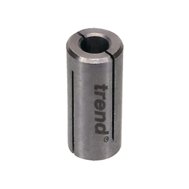 Trend collet reduction sleeve, used to reduce the collet size to take cutters with smaller shanks. Should only be used as a stop-gap, as the correct size collet is recommended. Should not be used for extensive periods or heavy work.