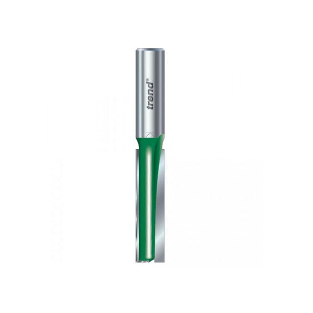 Trend CraftPro Cutter with two flute carbide TCT tips for cleaner cutting edges and fast clearance of waste in all timber and timber-based materials. With a bottom cut feature. The PTFE coating minimises heat and resin build-up for increased cutter performance and longevity. 1/2in shank for heavier workloads, ideal for router table work and for use in bigger routers. The 'K' mark shank ensures safe working practices. Suitable for a wide range of applications such as engraving, grooving, rebating and shallow morticing. Use on softwoods, hardwoods, MDF, plywood and chipboard.