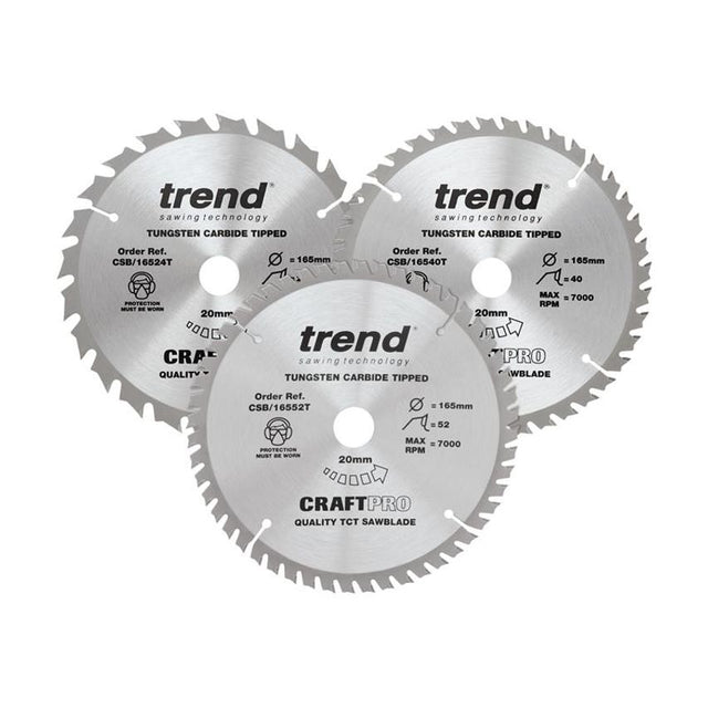 Trend CraftPro Cordless Saw Blade, designed for a professional finish in softwood, hardwood, plasterboard, stone fibreboard, particle board, veneer, plywood, MDF and hardboard. Thin kerf, ideal for cordless saws. High-grade alloy steel plate body precision ground to maintain flatness. Silver brazed to ensure tips are securely bonded to body. With a reamed bore to ensure a precise spindle fit. Laser etched on reverse to European Standard EN 847-1/2.
