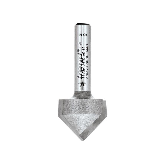 Chamfer V-grooving cutters are used for bevelling, chamfering and producing mortar grooves. Due to design, an approx. 1.0 mm flat will be found on the nose. Typical trade applications include sign making, freehand engraving, cabinet making and decorative joinery.