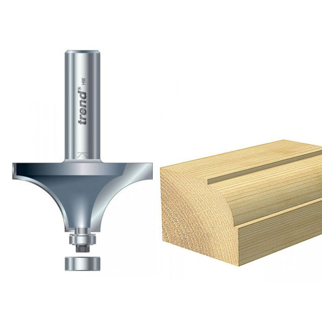 Trend Bearing Guided Ovolo & Round Over Cutters are ideal for curved work. They can be used on natural timber, man-made particleboard and fibreboard. Popular uses include edging window frames, glazing bars, cabinets, tabletops, pencil rounds, trophies, shelves and fire surrounds. They can also be used to produce bullnose edge moulds. Supplied with two bearings 9.5mm and 12.7mm diameter. The larger bearing removes the quirk producing a round over profile.