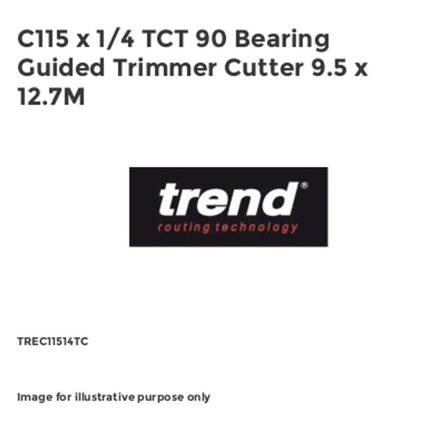 Trend Self-Guided 90 Bearing Guided Trimmer for trimming plastic or plywood overlays. Also for copy profiling with a template. Raise cutter in stages to spread wear of cutting edges. Made from TCT.