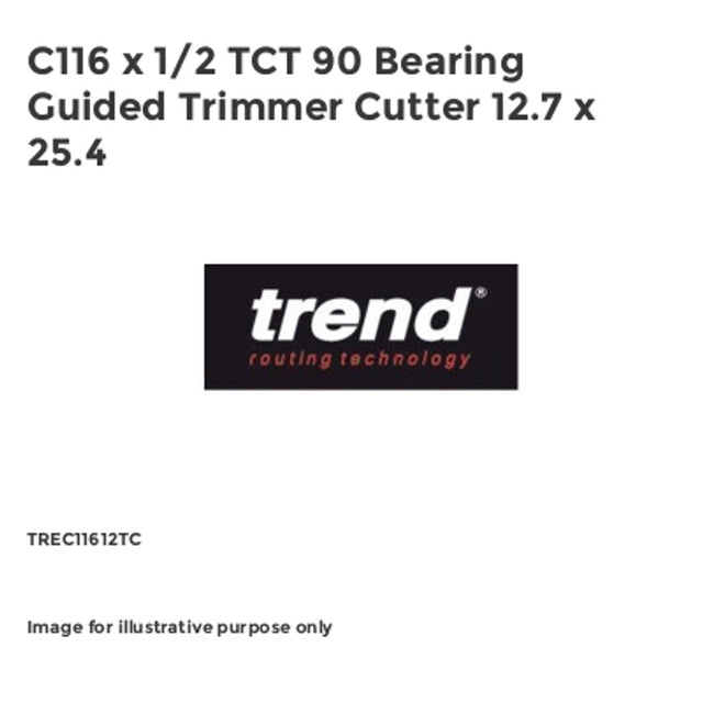 C116 x 1/2 TCT 90 Bearing Guided Trimmer Cutter 12.7 x 25.4