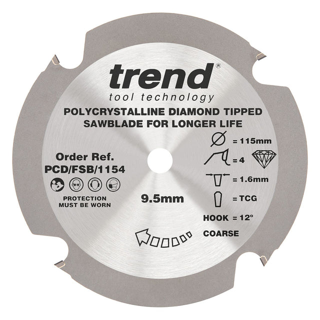 Trend PCD Fibre Cement Circular Saw Blade 115mm x 9.5mm x 4T