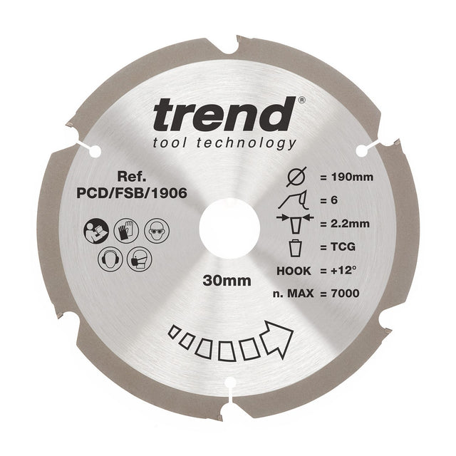 Trend PCD Fibre Cement Circular Saw Blade 190mm x 30mm x 6T