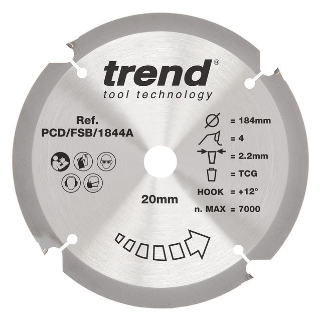 Trend PCD Fibre Cement Circular Saw Blade 184mm x 20mm x 4T