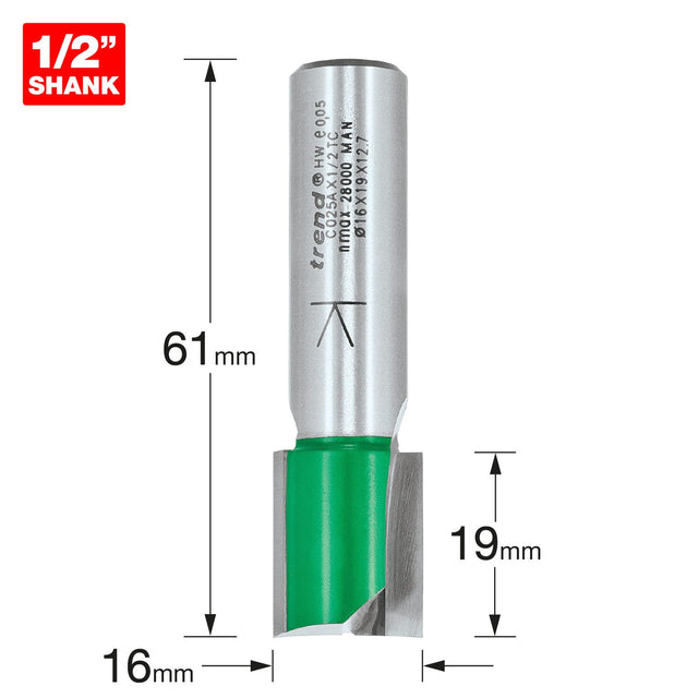 Two Flute Cutter 16mm Diameter - C025AX1/2TC