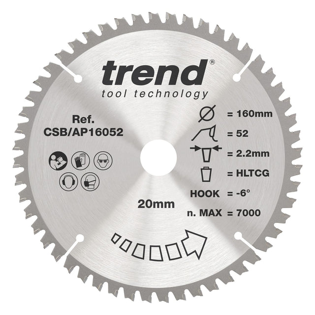 Trend Aluminium/Plastic Circular Saw Blade 160mm x 20mm x 52T