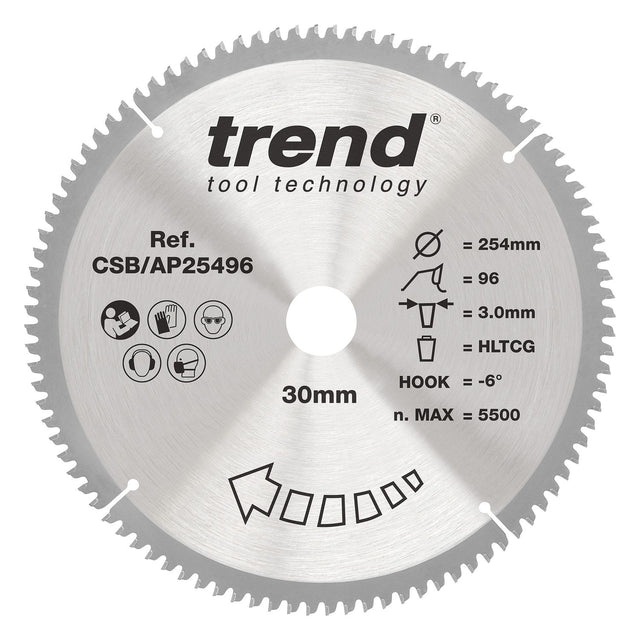 Trend Aluminium/Plastic Circular Saw Blade 254mm x 30mm x 96T