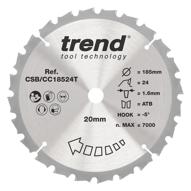 Trend Wood Cordless Mitre Saw Blade 185mm x 20mm x 24T