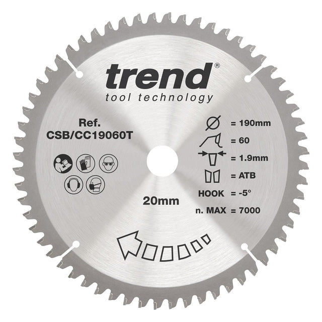 Trend Wood Cordless Mitre Saw Blade 190mm x 20mm x 60T