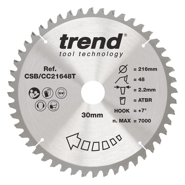 Trend Wood Cordless ATBR Mitre Saw Blade 216mm x 30mm x 48T