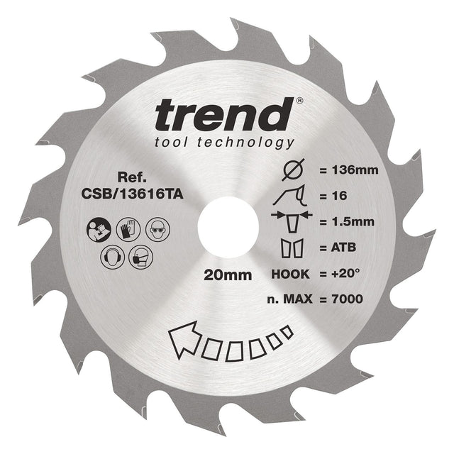 Trend Wood Cordless Circular Saw Blade 136mm x 20mm x 16T