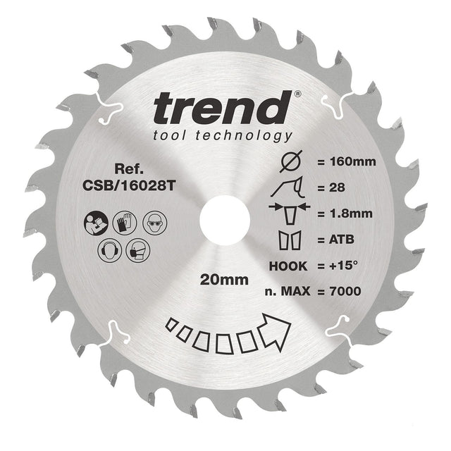 Trend Wood Cordless Circular Saw Blade 160mm x 20mm x 28T