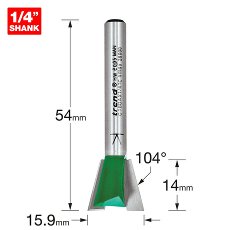 Low stock (10 units)£54.99Unit price /UnavailableDovetail 6.0mm Diameter x 98 Degrees Two Flute - C154X8MMTC