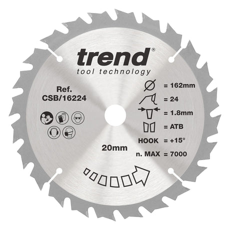 Low stock (10 units)£76.99Unit price /UnavailableWood Cordless Circular Saw Blade 162mm x 20mm x 24T - CSB/16224