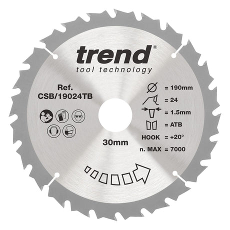 Low stock (10 units)£71.49Unit price /UnavailableWood Cordless Circular Saw Blade 190mm x 30mm x 24T - CSB/19024TB