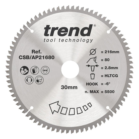 - Aluminium/Plastic Circular Saw Blade 216mm x 30mm x 80T Low stock (10 units)£104.49Unit price /Unavailable