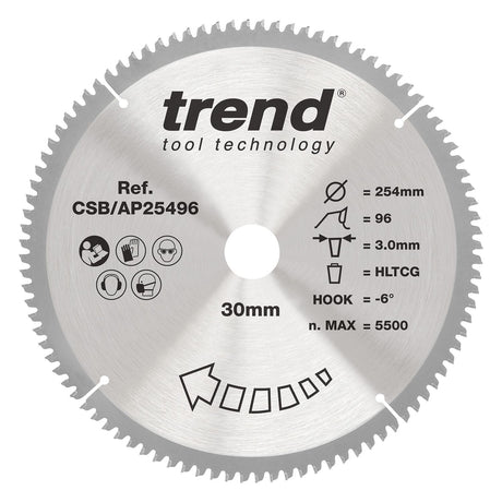 - Aluminium/Plastic Circular Saw Blade 254mm x 30mm x 96T Low stock (10 units)£113.29Unit price /Unavailable