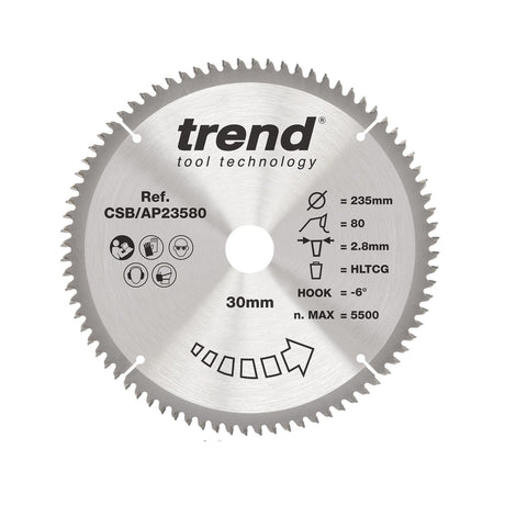 - Aluminium/Plastic Circular Saw Blade 235mm x 30mm x 80T Low stock (10 units)£80.29Unit price /Unavailable