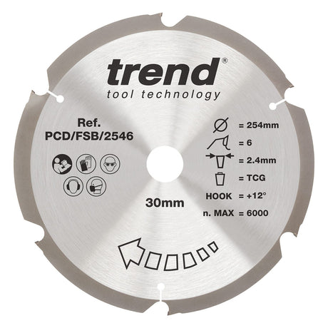 PCD Fibre Cement Circular Saw Blade 254mm x 30mm x 6T