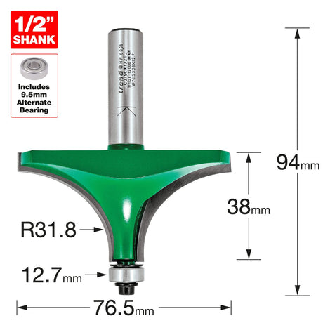 Low stock (10 units)£82.49Unit price /UnavailableBearing Guided Ovolo Cutter 25.4mm Radius - 46/18X1/2TC