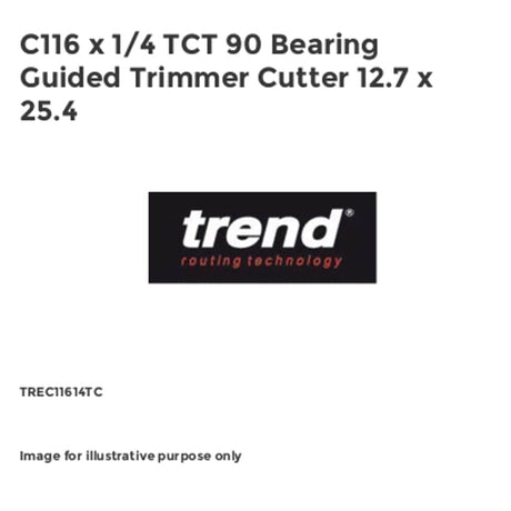Low stock (10 units)£40.69Unit price /UnavailableC115 x 1/4 TCT 90 Bearing Guided Trimmer Cutter 9.5 x 12.7M