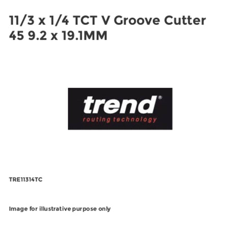 Low stock (10 units)£68.19Unit price /Unavailable11/3 x 1/4 TCT V Groove Cutter 45 9.2 x 19.1MM TRE11314TC