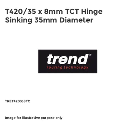 Low stock (10 units)£71.49Unit price /UnavailableT420/35 x 8mm TCT Hinge Sinking 35mm Diameter TRET420358TC