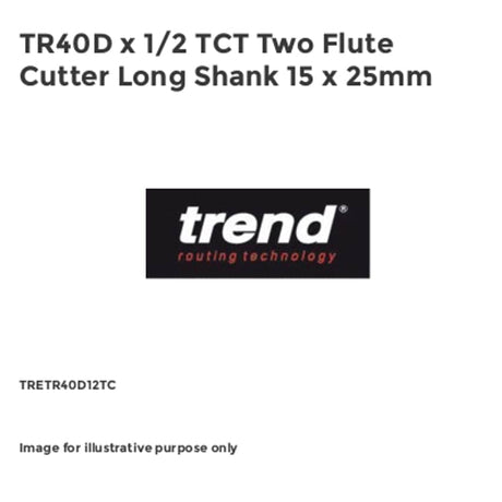 Low stock (10 units)£43.99Unit price /UnavailableTR40D x 1/2 TCT Two Flute Cutter Long Shank 15 x 25mm TRETR40D12TC