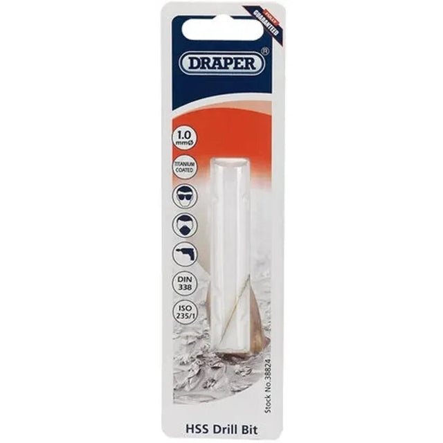 Draper TWIST DRILL METRIC 1.0MM HSS TITANIUM Drill Bits and Accessories (D) 38824