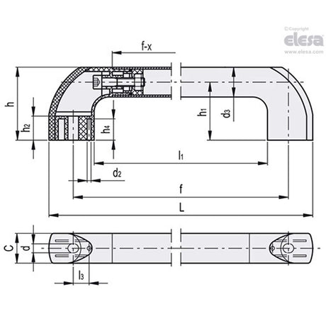 ETH Tubular handles Technopolymer and aluminium Anodised aluminium tube ETH.35-300-AN-C6