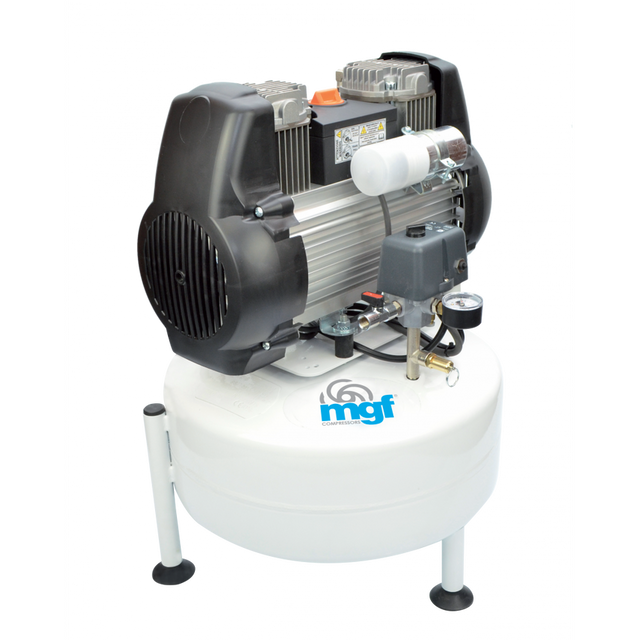24/10 GENESI S Code: M-D-GE150-024 Model: 24/10 Genesi S Weight: 29 kg HIGHLIGHTS: Main features: Compact design Receiver Size - 24Lt Noise level as low as 65 dB (A) - 50 dB (A) with MINI BOX Ideal for the small lab, dental surgery, or process where air quality is critical Oil Free Simple control Portable Competitively Priced SPECIFICATION Chairs 2 c.f.m 4.8 L/min 135 Hp 1.5 kW 1.1 Bar 8 Psi 145 dB (A) 65 Volt 230 Receiver Size 24Lt Product L x W x H (mm) 430 x 400 x 600 Kg 29