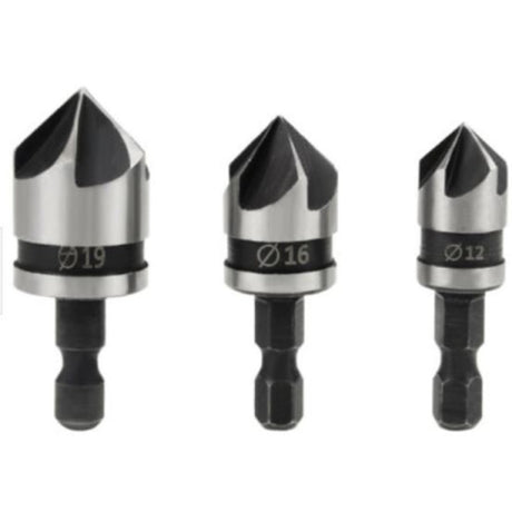 Low stock (10 units)£153.99Unit price /Unavailable3 Piece Countersink Set 5 Flute 90 Degree Chamfer