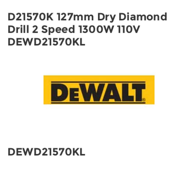 D21570K 127mm Dry Diamond Drill 2 Speed 1300W 110V DEWD21570KL