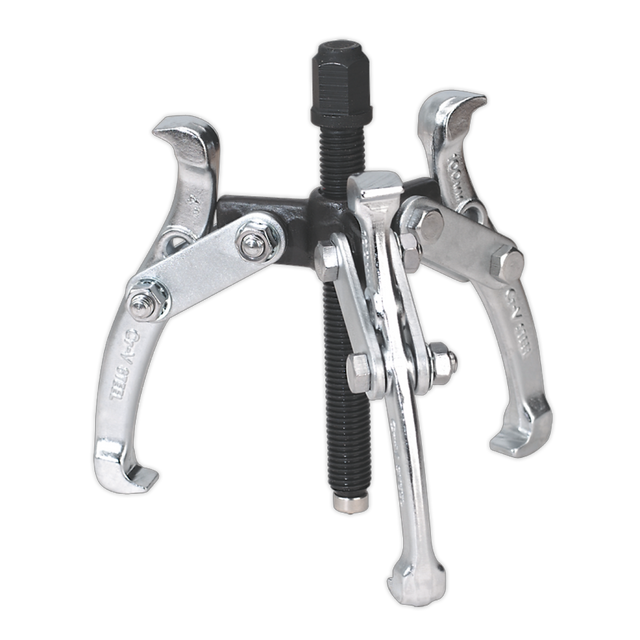 Triple leg puller with reversible, drop-forged, Chrome Vanadium steel legs. Heat treated for added strength and chrome plated to resist corrosion. Swivel thrust plate prevents damage to shaft ends.