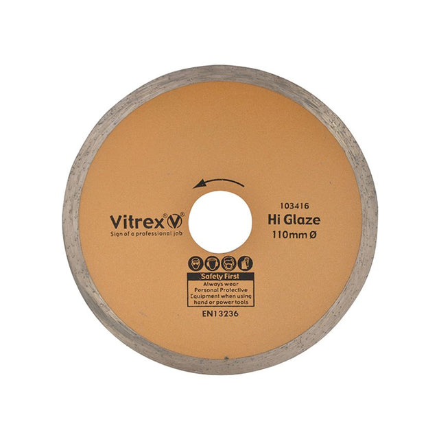 The Vitrex Hi Glaze Diamond Blade Hi Glaze Diamond Blade produces a finer cut to eliminate chipping on ceramic, porcelain, slate, stone, marble, travertine, granite, quarry, terracotta tiles and limestone.