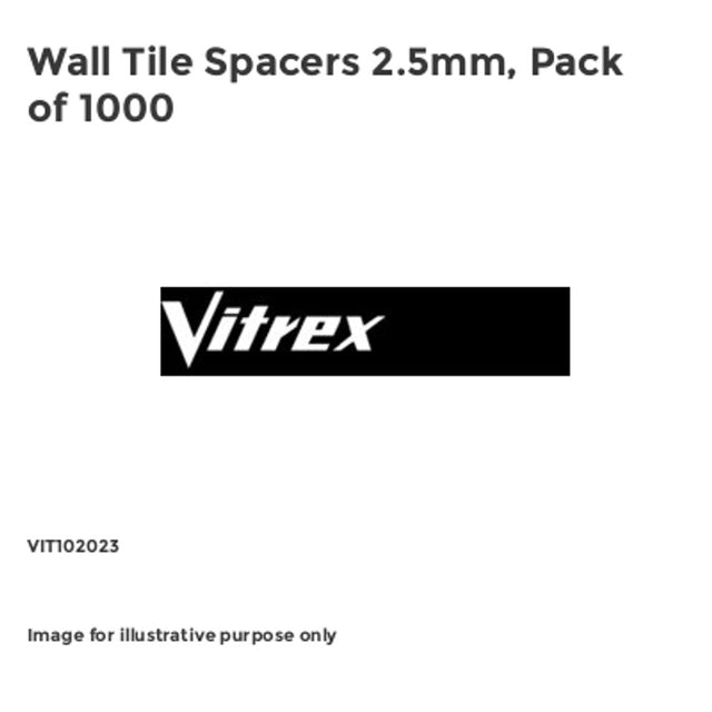 Vitrex Wall Tile Spacers are supplied in a resealable bag or tub for easy and convenient storage. Each pack comes complete with a Ready Reckoner, a quick and simple way to calculate the correct number of spacers required. Tile spacers provide an easy way to achieve a more professional finish, spaces floor tiles evenly, and ensures an even grout line throughout.