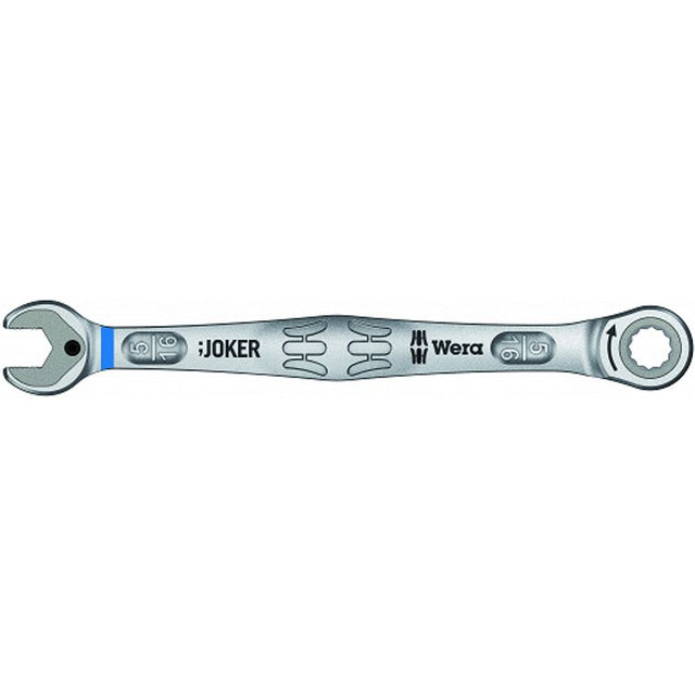 The Wera Tools Joker is an innovative combination spanner with a unique jaw design. Its clever design means that it does everything that a conventional combination spanner does, and more. Made from durable chrome molybdenum steel and coated with corrosion resistant nickel-chrome, the Joker is a truly high-quality spanner. Advantages of the jaw end An innovative metal stop-plate means that the Joker can hold a fastener in position for screwdriving, making assembly easier and quicker. An integrated lL off the fastener. The jaw allows safe screwdriving, even at high torques, due to its extra hard and toothed gripping plate, which prevents slippage of the fastener and helps to eliminate rounding. A reverse travel angle of 30 allows the spanner to be used in confined spaces, where a conventional open-end spanner cannot be used. Advantages of the ratchet end Ultra-fine toothing, with 80 teeth, allows flexibility even in confined spaces. Very long service life, even when used at high torque.