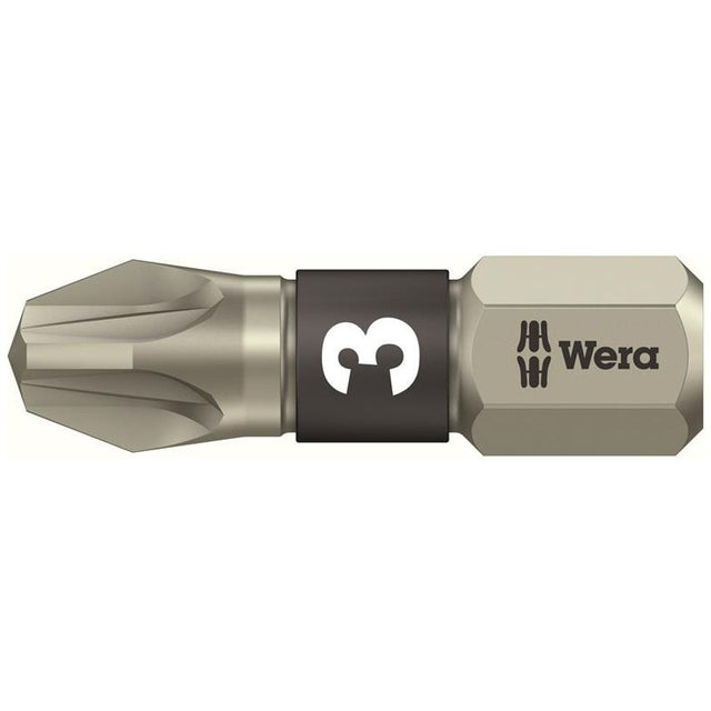 Wera Tools Stainless Torsion Pozi Bits prevent rust on Stainless Steel fixings caused by contamination from conventional steel tools. Vacuum ice-hardened to the same strength as conventional steel tools, and so suitable for tough, industrial use. Wera Tools Stainless bits feature a unique Torsion zone, extending bit life over standard bits. Use with Wera Tools stainless Rapidaptor bit holder. Application Suitable for Pozidriv-screws. 1/4in Hexagon Drive, DIN 3126-C 6,3, ISO 1173. Tip DIN 5260-PZ, ISO 8764-PZ, Stainless Steel, INOX.