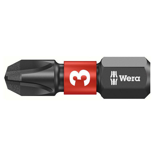 The Wera Tools Impaktor 25mm Phillips bits with 1/4in hexagon drive. Designed for use with all heavy-duty impact machines and can be used on any machine. The Impaktor technology ensures an above-average service life even under extreme conditions thanks to the best possible utilisation of the material properties and optimally designed geometry. Particularly suitable for use with conventional impact drivers, the rough diamond coating reduces the danger of any slipping out of the screw head due to the enhanced frictional resistance. Use with Impaktor holders to complete the system. Phillips PH3 x 25mm Carded