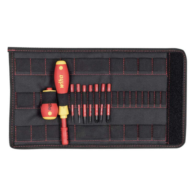 The Wiha SoftFinish electric slimVario Interchangeable Screwdriver Set covers multiple applications in one compact case, reducing the need for carrying multiple large screwdrivers. Ideal for electricians who are often faced with different screw profiles when working on live parts during their daily work.Both the insulated screwdriver handles and slimBits undergo an individual piece test as per the international IEC 60900 standard, allowing users to work safely on live parts up to 1,000 V AC. This 10 Piece Set contains the following: 1 x SoftFinish electric slimVario Stubby Screwdriver. Patented SoftFinish handle ensures work is kind to hands and muscles. Recommended by doctors and therapists at the German Campaign for Healthier Backs. 1 x SoftFinish electric slimVario Screwdriver. Patented SoftFinish handle ensures work is kind to hands and muscles. Recommended by doctors and therapists at the German Campaign for Healthier Backs. 3 x Slotted slimBit electric Blades: 2.5 x 75mm, 3.5 x 75mm & 5.5 x 75mm. 2 x Pozidriv slimBit electric Blades: PZ1 x 75mm & PZ2 x 75mm. 2 x PlusMinus/Pozidriv slimBit electric Blades: SL/PZ1 x 75mm & SL/PZ2 x 75mm. 1 x Folding Case. Made from high-grade, hard-wearing materials. All components are arranged practically so they are easy to identify.