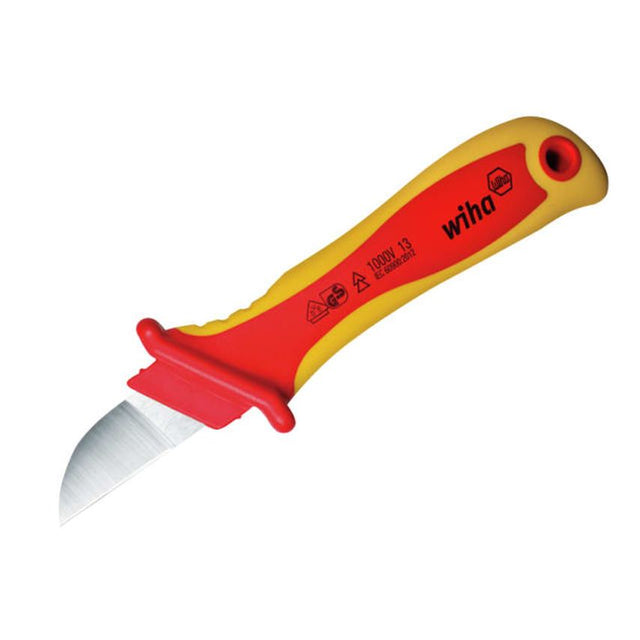 This Wiha VDE Cable Stripping Knife comes with a straight cutting edge for round cables. Individually tested at 10, 000 V AC and approved for 1, 000 V AC.